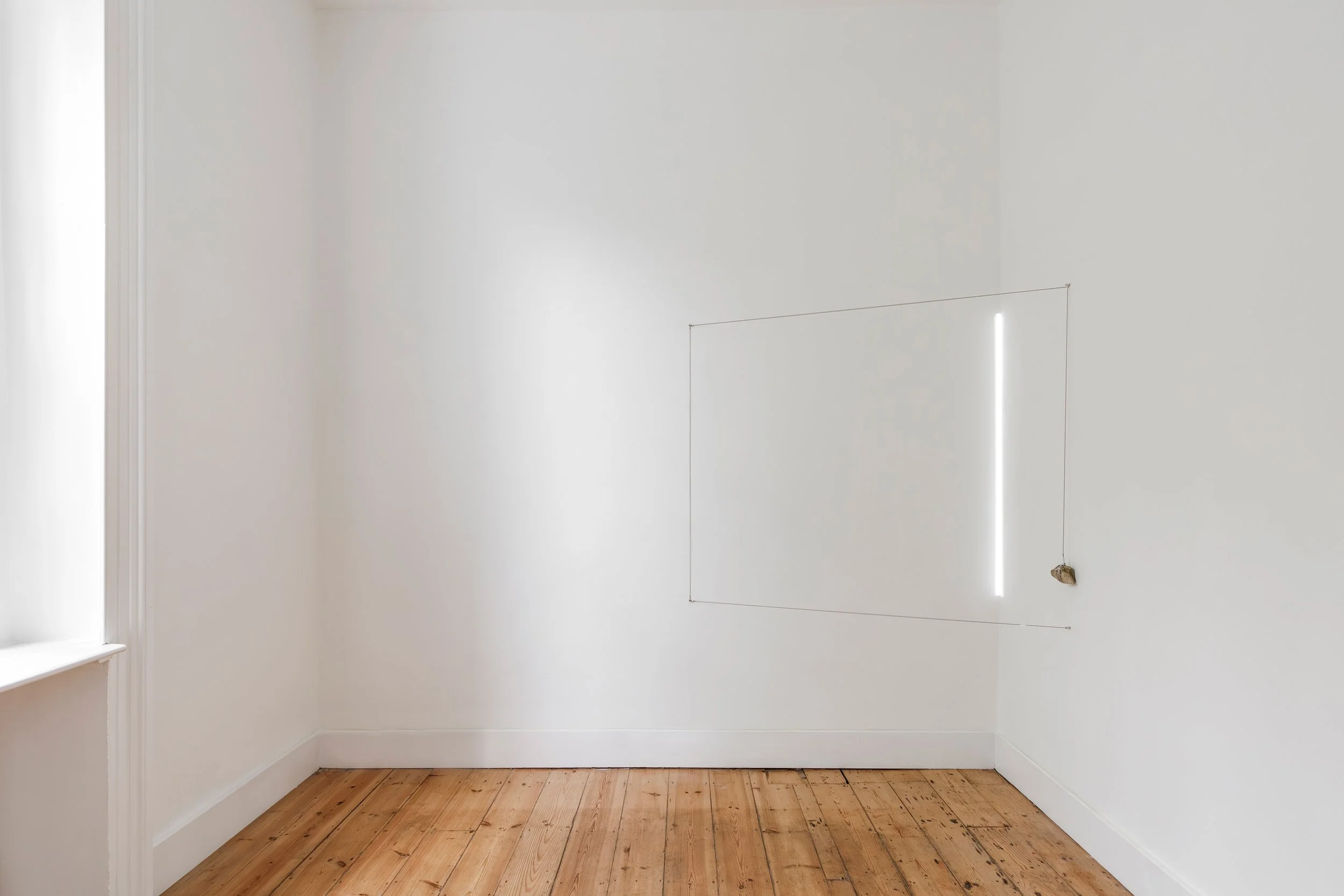 Plexiglass, steel wires, natural rock