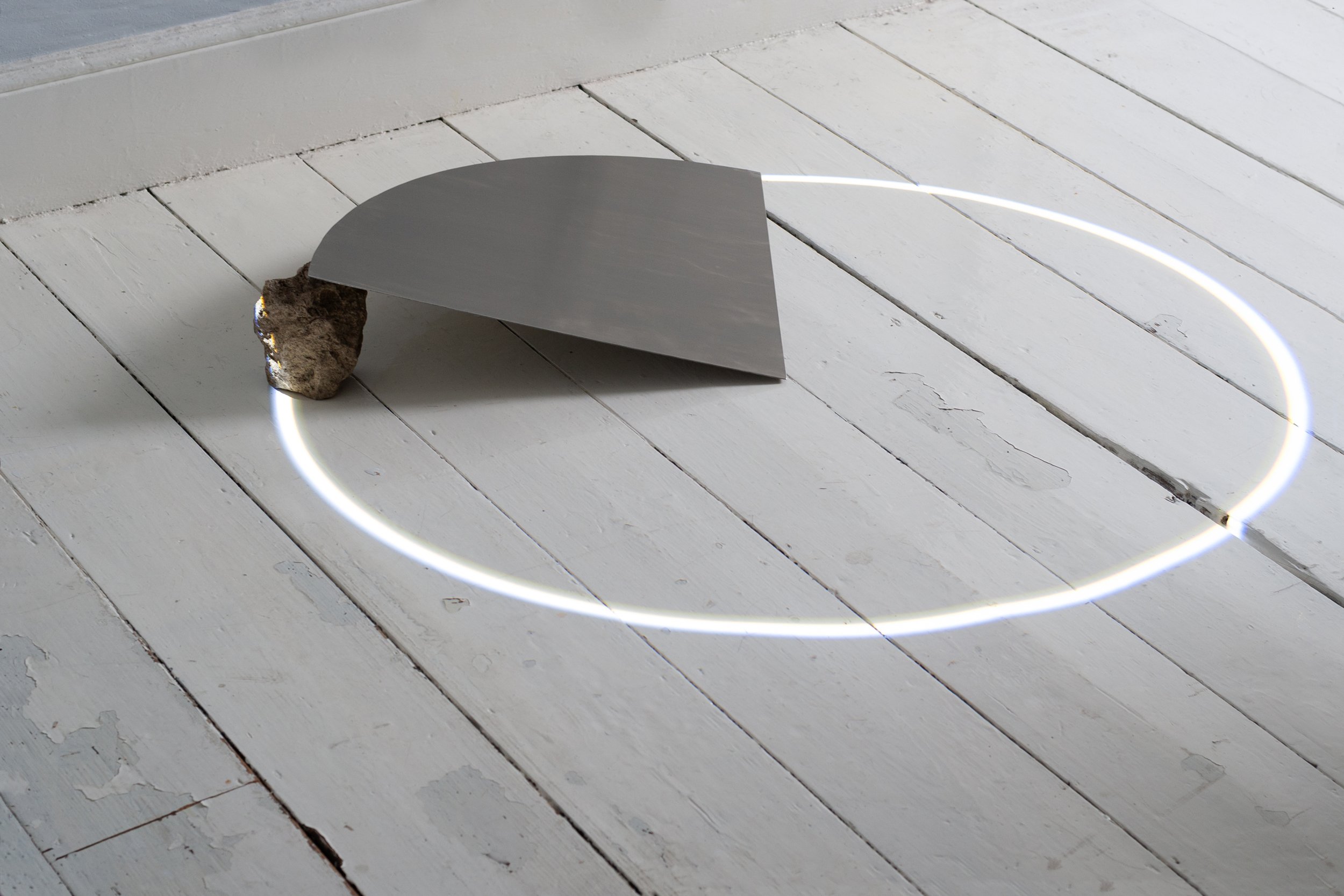 Plexiglass disc, steel wires, projector lamp