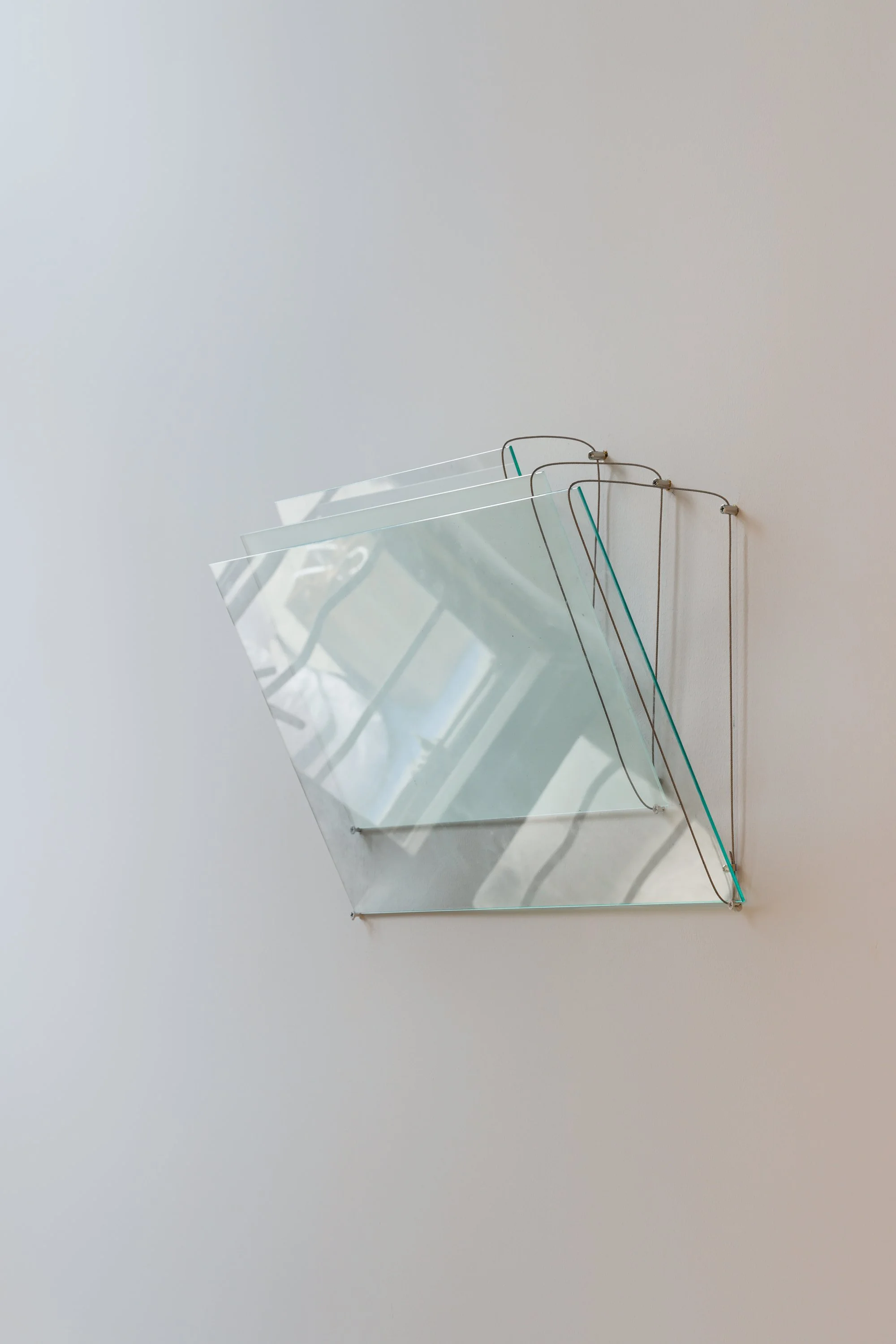 Float glass, brushed stainless steel, metal wires